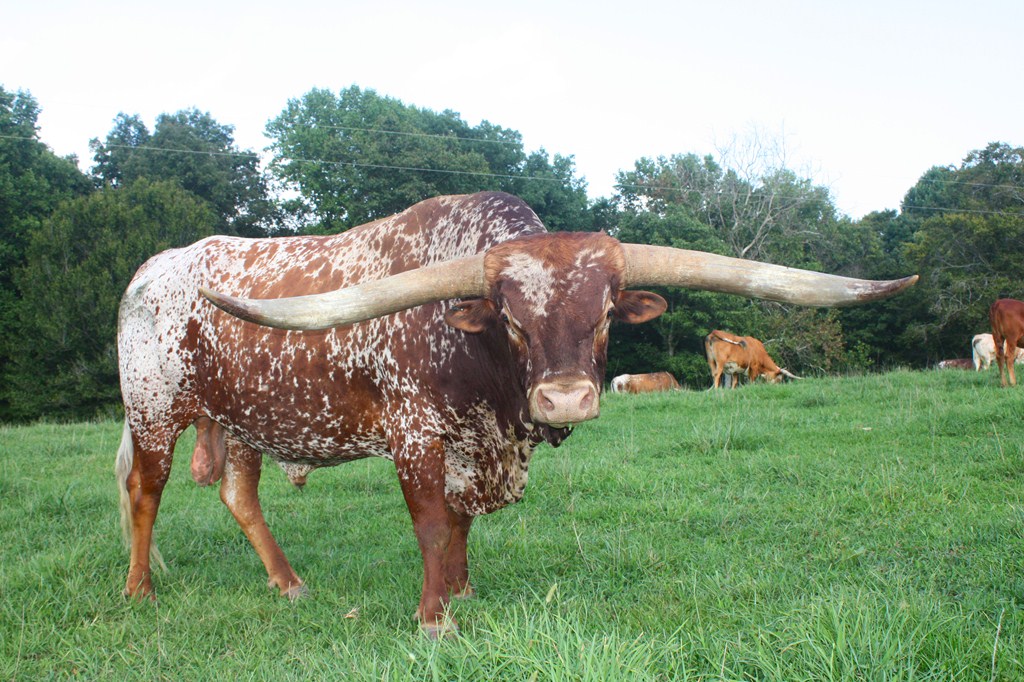 17.5 inch bases. Outstanding genetics and color qualify him as the total package sire for the future. At the 2009 Horn Showcase he measured 65 3/4" T2T - 77" Total Horn - with a composite measurement of 173 3/16". This sire has HUGE bases. His bases measured 16 ½" on 9/7/14. Fantastic pedigree. Buyer pays shipping. Semen located at Elgin & Trans Ova. Photo taken 8/23/14.