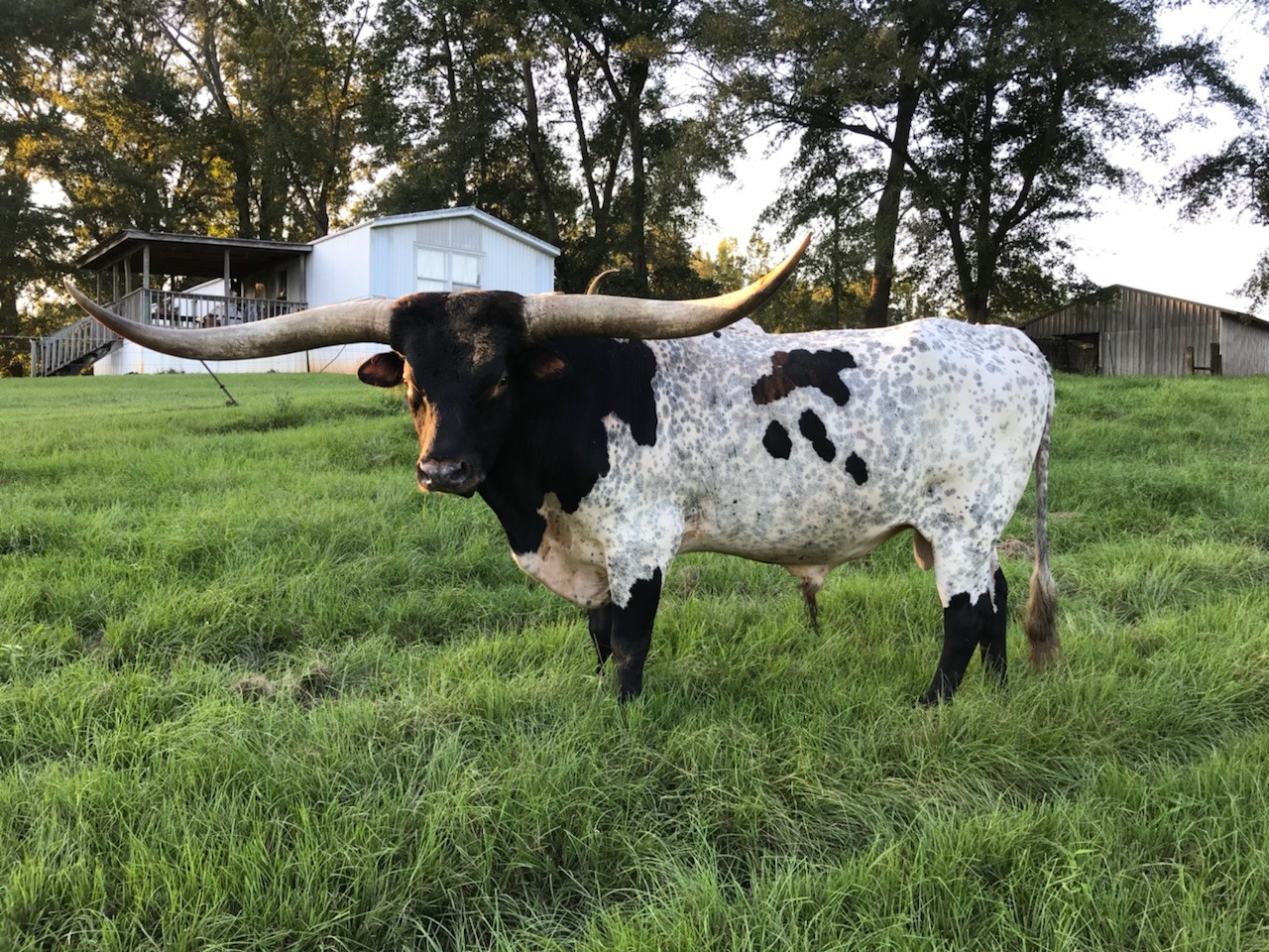 This is an own son of the longest horn bull on record, Cowboy Tuff Chex. His dam is one of the prettiest longhorn cows ever. Tuff Enuff Chex consistently sires beautiful brindle and Parker brown calves. If you are looking for a bull who can lower the higher horned cows, he's your guy. Just look at his offspring for the proof.
